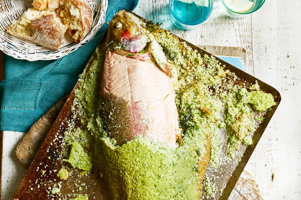 Запеченная в соли морская форель